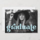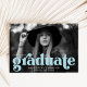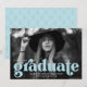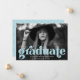 Stylish graduation announcements featuring the graduate's horizontal photo with "graduate" in bold sky blue lettering. Personalize the photo graduation announcement by adding the graduate's name, graduation year, and school. The announcement reverses to display a sky blue and white retro arch pattern.