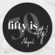 Bold typography with calligraphy 50 is nifty birthday party confetti in black and white. All text is completely customisable and matches our other 50 is nifty products. A great addition to the tables and serving areas.