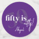 Bold typography with calligraphy 50 is nifty birthday party confetti in purple and white. All text is completely customisable and matches our other 50 is nifty products. A great addition to the tables and serving areas.