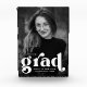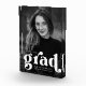 Stylish graduation photo block featuring the graduate's vertical photo with "grad" in bold white lettering. Personalise the photo block by adding the graduate's name, graduation year, and school.