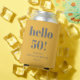 Bold Typography Modern 50th Birthday Party Custom Can Cooler in Stylish Yellow and Grey