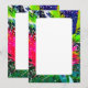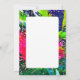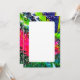 A blank double-sided invitation with a bold, vibrant watercolour border of hot pink, greens and blues