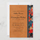 Bring bold artistry and modern elegance to your wedding celebration with this vibrant orange floral invitation. The front features a warm, painterly gradient in rich sunset tones, paired with clean, classic typography for a beautifully readable layout. A striking vertical floral border adds an eye-catching statement, blending deep navy, bright red, and vivid orange blooms in a contemporary mixed-media style that ties the entire design together.