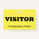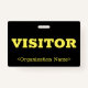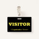 This eye-catching badge design features the message "VISITOR", and a customisable company name or other custom message. A badge like this could perhaps be used to indicate that a person is a known and authorised guest or visitor at a business or workplace. [~Z0000307]