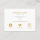 Stand out with a clean white and gold social media business card that centres the brand name and neatly lists email, phone, website, and three social handles for effortless connection. The icon row keeps platforms recognisable while preserving a minimalist look; handles sit directly beneath each icon for quick follow through. Gold accents are a printed colour, not metallic foil, ensuring a sleek, modern finish. If you need help changing the social icons, please contact me.