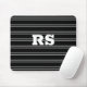 Bold White Monogram, Grey Lines on Black Mouse Pad