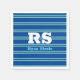 Bold White Monogram, Lt. Teal Lines on Deep Blue Napkin
