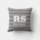 Bold White Monogram & Name, Lt Grey Lines on Grey Cushion