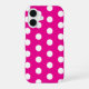 Bold White Polka Dots on Hot Pink iPhone 16 Case