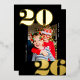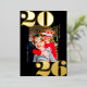 This playful and modern New Year photo card features large typography year numbers in gold foil with a single vertical photo on a chic black background. On the reverse side is the same black background. You can add another photo or text to the back by selecting "design using editing tool". Add the "wow" factor with a real pressed foil holiday card this year!