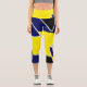 Bold Yellow Blue Black Abstract Art Lines Capri Leggings