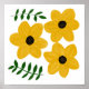 This modern art poster features bold yellow flowers with clean, simple lines for a bright contemporary look. It adds a fresh pop of color and a minimal floral touch to any room, from living spaces to studios and offices. A great choice for modern decor and anyone who enjoys strong, graphic botanical art.