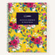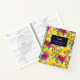 Striking floral recipe notebook featuring a pattern of hand-drawn flowers in pink and purple against a bright yellow background. Personalise with your name in modern white letters on a dark blue label beneath a cute balloon whisk.