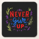 Make a bold statement with this vibrant, motivational design! Never Give Up is powerfully rendered in striking red and blue, standing out against a warm brown background that radiates resilience. Decorative leaves and small geometric shapes elegantly frame the message, adding a touch of sophistication. Bright purple and yellow accents bring a lively pop of colour, enhancing the positive energy and reminding you to keep pushing forward with strength and style. Perfect for those who need a daily dose of encouragement, this design inspires confidence and determination!