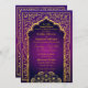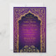 Bollywood or Arabian Nights theme wedding invitation card in purple ombre with gold foil accents.