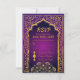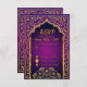 Bollywood or Arabian Nights theme wedding RSVP card in purple ombre with gold foil accents.
