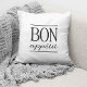 Square white throw pillow with a BON APPETIT kitchen quote typography print. Matching home decor available.
