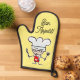 Bon Appétit oven mitt with cute cartoon chef cook. Personalise with custom text. Yellow or custom colour. Custom kitchen accessories.