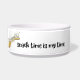 I absolutely love this product! I was a little concerned prior to buying it, but I was blown away by the quality of the item. The bowl is sturdy and arrived clean without any damage. The printing was crisp and clean and looks Better than I hoped! My dogs immediately knew these were for them and get very excited to pose with their new bowls! Definitely recommend and will purchase more in the future! The printing is crisp and well done. It looks absolutely beautiful on the bowl, and I can tell that it’s going to hold up well over time.