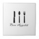 These French themed ceramic tiles are printed in black on white with a silverware place setting and French Bon Appetit. Add this fun tile to your decor. Be sure to view all the items in my French Home collection, you can choose from paper plates, napkins, gift wrap items, tags and labels.