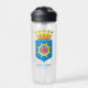 The bottle looks even better in real life. The ice cubes I put in lasts all day! I have my bottle with me all the time. It's summer and having something cold to drink feels amazing. With this bottle I always have something super cold. I have only tried the hot drink once and it lasted a long time as well. The color blue is a navy blue and the white printed on it is vibrant. It printed perfectly. I love my personalized smile water bottle.