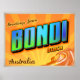 Inspired by the classic Americana postcards of the 50s and 60s. These retro roadtrip style designs feature some of the world's most famous beach vacation destinations. Bondi Beach Australia. Bondi print.