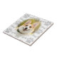 Cute custom ceramic tile with bone and paw pattern. Faux paper cut out print.