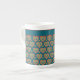 Bone China Mug, Red, Green Hearts on Teal Bone China Mug