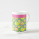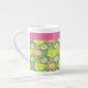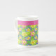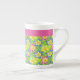 A pretty Bone China Mug to Personalise, with a pattern of pink, yellow and blue Primroses, teamed with matching pink band where you can add text if you wish; part of the Posh & Painterly 'Primroses' collection.