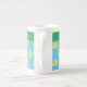 A pretty Bone China Mug to personalise, with a pattern of Primroses and Green Polka Dots on a Sky Blue background, teamed with Yellow and White Polka Dots; part of the Posh & Painterly 'Primroses' collection.