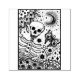 BONES IN THE GARDEN SKELETON, FOLK ART MOON MOTH RUBBER STAMP