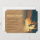 Bonfire beach wedding invitations. A blazing fire and beach sand is the background image for custom text. Celebrate a wedding on the beach, or reception by firelight and send invitations that match your wedding theme. The bride and groom are inviting guests "together with their families" in this sample wording. Contact me for changes. The scalloped edge is easy to change, and speciality paper upgrades are available.