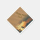 Bonfire birthday napkins with custom text. A burning fire image with sand background. Sample wording is, "Happy 50th - with name".