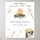 Watercolor a bonfire, marshmallows on sticks, cookie sandwich. Campfire in the woods.