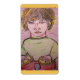 a young boy playing toy bongos from a coloured pencil sketch.