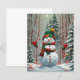 Bonhomme de neige dans la forêt, dans les tons rouge et vert, parfait pour les fêtes de fin d'année