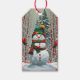 Bonhomme de neige dans la forêt, dans les tons rouge et vert, parfait pour les fêtes de fin d'année