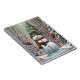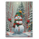 Bonhomme de neige dans la forêt, dans les tons rouge et vert, parfait pour les fêtes de fin d'année