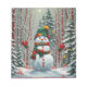 Bonhomme de neige dans la forêt, dans les tons rouge et vert, parfait pour les fêtes de fin d'année
