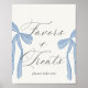 This chic and elegant Paris-themed baby shower favours & treats sign is available for instant digital download! Designed with soft dusty tones, blue bows and modern script typography, this tabletop sign template is perfect for celebrating a baby girl in Parisian style.