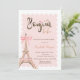 Bonjour Bébé Eiffel Tower Bow Striped Baby Shower Invitation