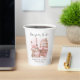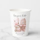For the parents-to-be. 'Bonjour Bébé' Parisienne Café street watercolor baby shower paper cup. Personalise with the inclusion of your text which will appear on the front and back. French inspired baby shower, inspired by French city life, with a view of the Eiffel Tower in the background. Part of the 'Bonjour Bebe' collection.