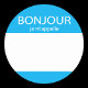 Bonjour je m'appelle French hello tag or badge. Round circle sticker with the traditional "Hello my name is" wording on blue in French.