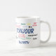 Say hello in many languages. Great mug for the world traveller, someone who works in a multicultural environment, or anyone who cares about the world. Template for you to add your name or another greeting. Design description: Hello in the following languages: Brazilian Portuguese, Chinese, Dutch, English, French, German, Hausa, Igbo, Italian, Jamaican Patois, Japanese, Korean, Norwegian, Spanish, Swedish, Thai, and Yoruba.