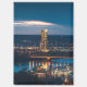 Blue Hour photograph of the city of Bonn with its landmark skyscraper "Post Tower" at the riverbanks of Rhine. Nordrhine-Westfalen, Germany.