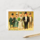 Custom cute and funny Vintage Happy New Year Postcard in french depicting a Bride and Groom with Family. The bride is carrying a bouquet of shamrocks .