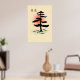 Shown is a black and white sketch of a classic bonsai with "Japan" in kanji characters.