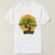 A beautiful illustration of a bonsai tree that sits in a black pot against a bright yellow circular background.