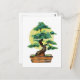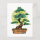 traditional watercolor painting of a bonsai tree in front of the big bright sun on a postcard.