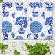 Bonsai Trees Pattern in Cobalt Blue and White Tea Towel